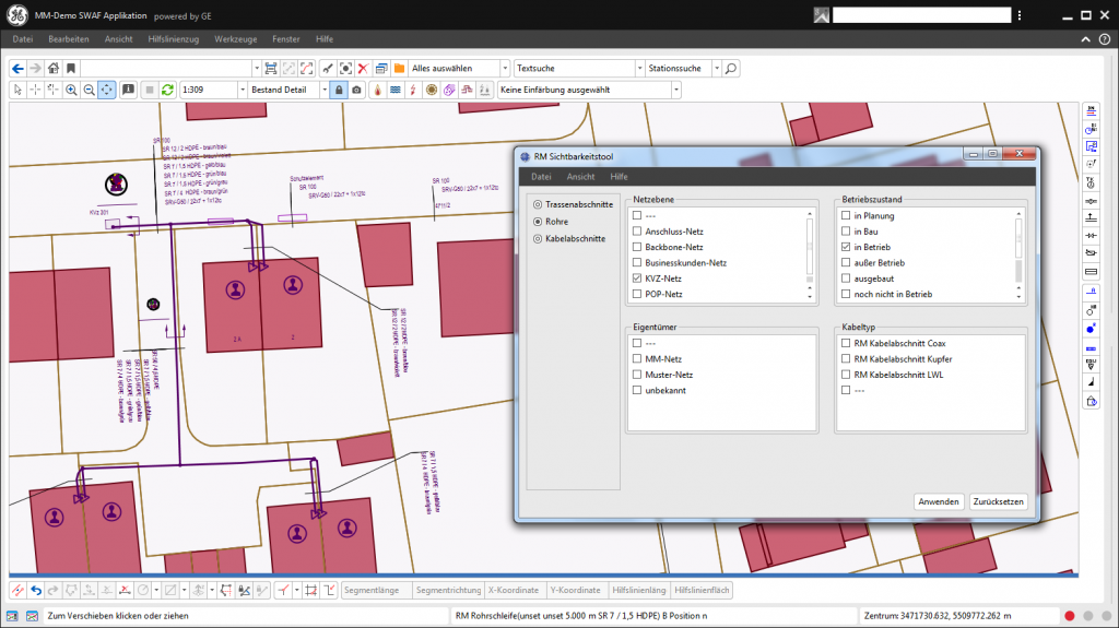 Trassendarstellung - Sichtbarkeitstool