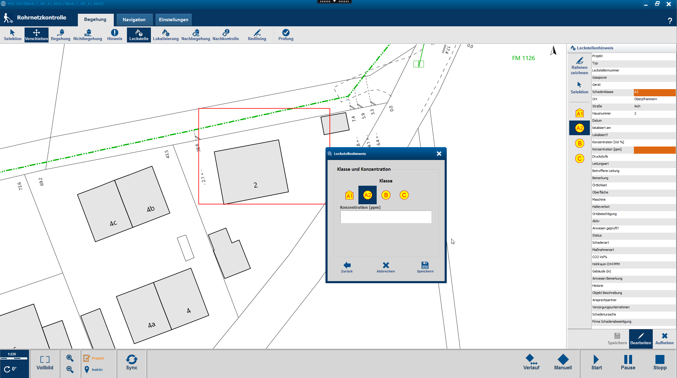 Bei der Konzeption der mobilen App wurde besonderer Wert auf die Einfachheit und Übersichtlichkeit gelegt. Da es sich um einen Offline- Client handelt, ist sie mit allen GIS-Kartenextrakten überall und jederzeit nutzbar. Externe Dienstleister können die App auf eigenen mobilen Geräten einsetzen, allerdings mit eingeschränkten Rechten. Auf diese Weise ist sichergestellt, dass sie auch außerhalb des Firmennetzwerks der Stadtwerke München zum Download der zugewiesenen GIS-Karten berechtigt sind. Im praktischen Einsatz bietet die App genau den Funktionsumfang, der für die regelmäßige Kontrolle der Gasnetze gebraucht wird. Bei den ungeplanten Prüfungen können die mobilen Teams mit der App auch Ad-hoc-Aufträge erfassen. Werden vor Ort Unregelmäßigkeiten festgestellt oder kommt zum Beispiel eine Meldung über die Schadenshotline rein, kann im MGC Client ein eigenes Projekt angelegt werden, um die Leckstelle festzuhalten und zu klassifizieren. Bei schweren Störungen gibt ein Sicherheitsplan entsprechende Handlungsanweisungen. So muss ein Prüfer den Schadensort direkt sichern und darf den Bereich nicht verlassen, bis der Störungsdienst eingetroffen ist.