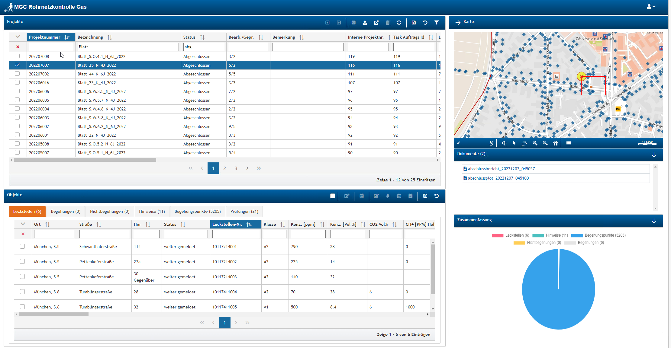 Seit 2019 nutzen die Stadtwerke München bereits die MGC Rohrnetzkontrolle im Wasserbereich ein. Dort werden die regelmäßigen Dichtheitsprüfungen seither mit der mobilen MGC-App gebietsweise und in vorgegebenen Intervallen dokumentiert. Der komplette Prozess läuft digital und weitgehend automatisch: Von der Auftragsplanung über die Erzeugung von Offline-Karten für die mobilen Tablets, die kartengestützte Begehung, die Dokumentation von möglichen Leckstellen und wieder zurück an die Arbeitsvorbereitung. Auf dem gleichen System setzt nun die neue Gasspürlösung auf. Den Kern bildet dabei das MGC Warehouse, das regelmäßig mit dem Netzinformationssystem der Stadtwerke abgeglichen wird. So stehen immer die aktuellen Netzdaten als Basis der Rohrnetzkontrollen zur Verfügung.