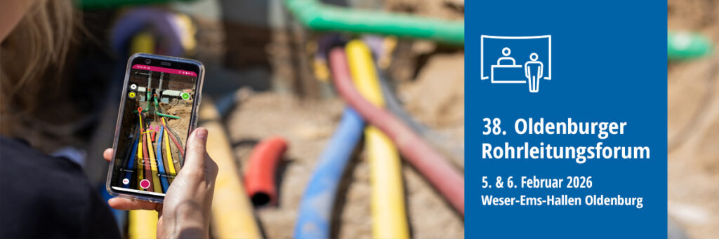 Am 5. und 6. Februar 2026 findet in Oldenburg das 38. Oldenburger Rohrleitungsforum statt. Besuchen Sie unser Team in der begleitenden Fachausstellung und entdecken Sie mobile Apps und modulare Softwarelösungen zur Bewirtschaftung von Netzen. Wir freuen uns auf Sie!